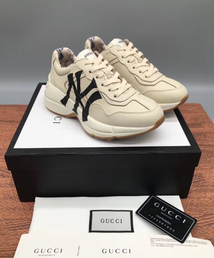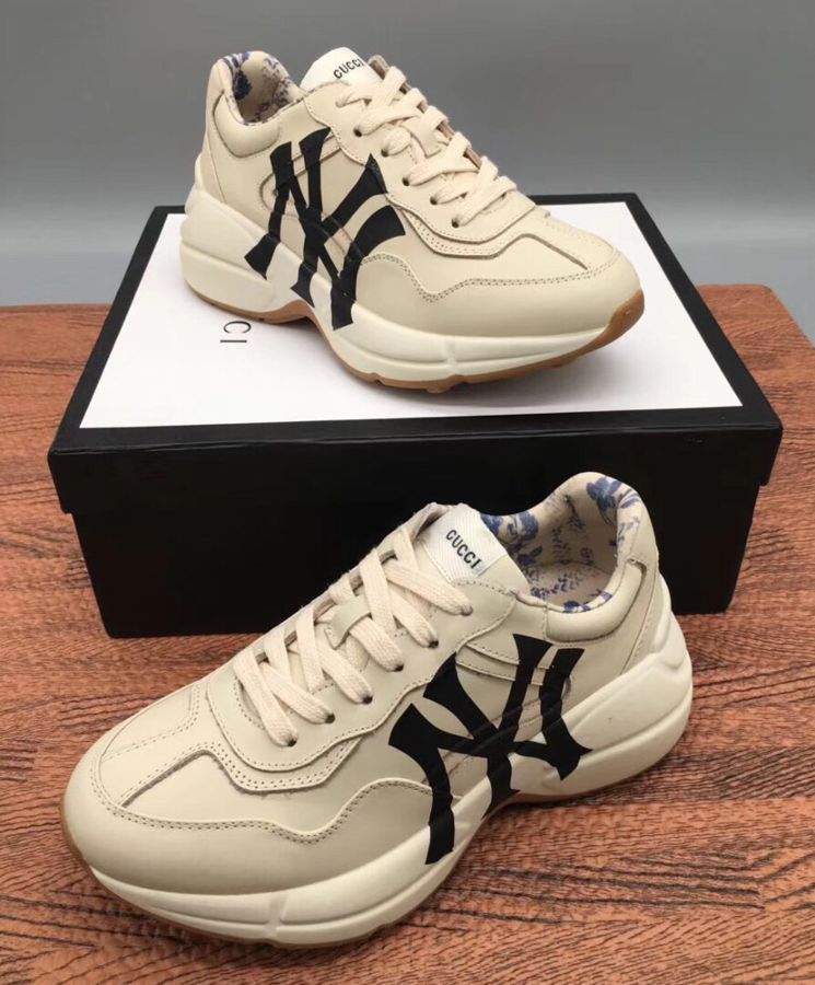 Inspired by the Creative Director’s New York Yankees baseball hat, Gucci incorporated a mix of Major League Baseball teams into the Cruise 2019 collection. Reworked within the eclectic narrative, the chunky sneaker features the New York Yankees print.