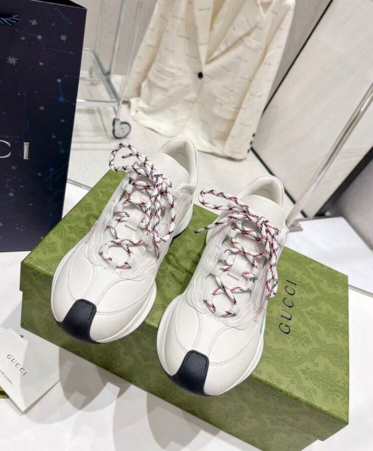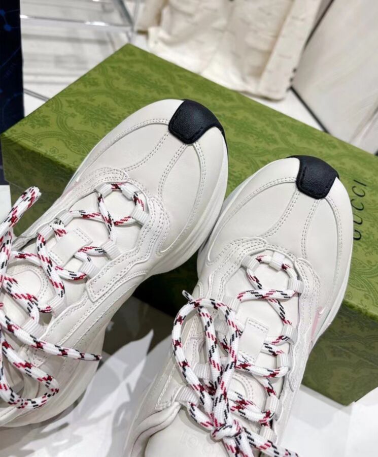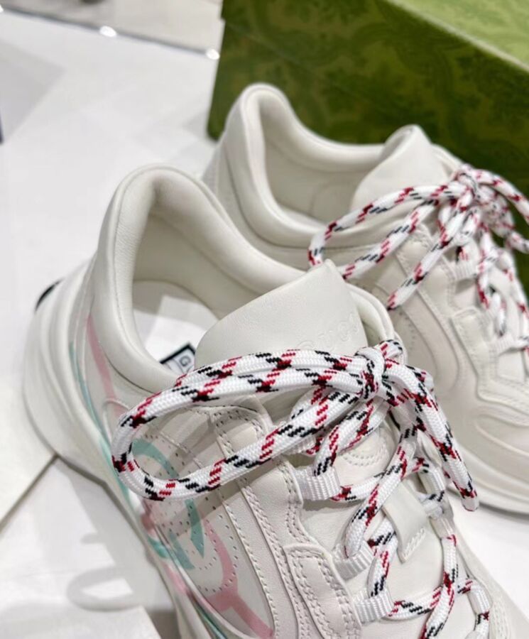 Designs inspired by the sporting world are interpreted through the Gucci lens with standout logo details. This pair of streamlined sneakers is crafted from leather and defined by a colourful Interlocking G print