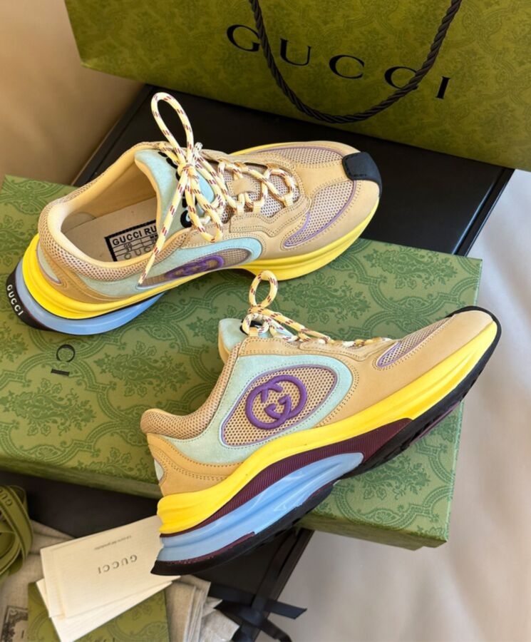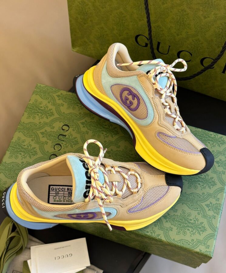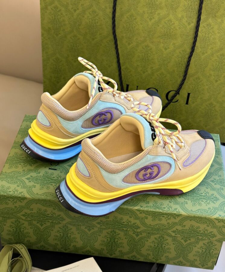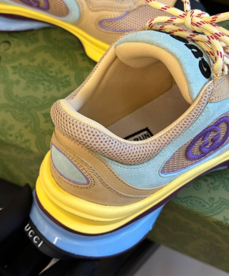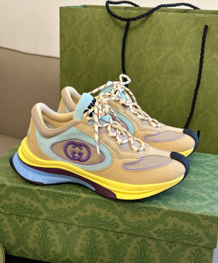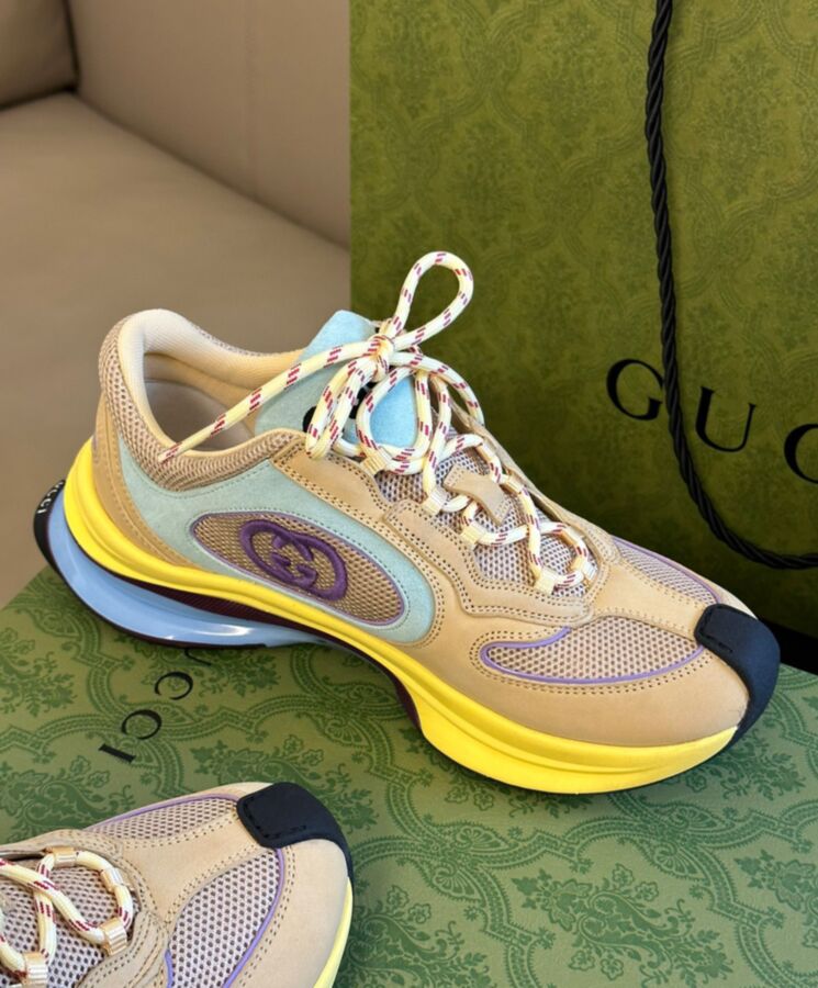 Designs inspired by the sporting world are interpreted through the Gucci lens with standout logo details. This pair of streamlined trainers is crafted from suede and enriched with a bi-colour rubber sole and an Interlocking G detail.
