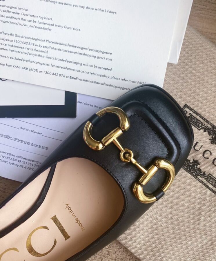 A square toed ballet flat crafted from smooth leather. Presented in a shiny gold tone, the Horsebit is an archival symbol that recalls the House’s equestrian heritage. leather Horsebit detail Leather sole Low heel 25mm heel height