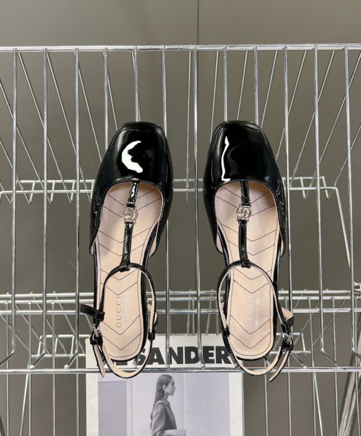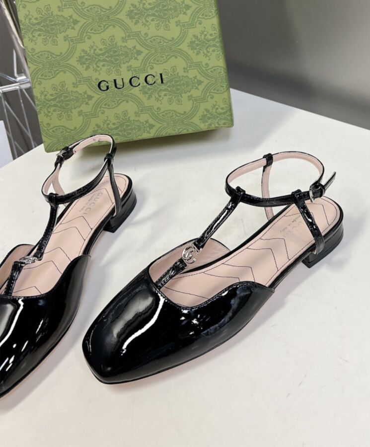 Subtle House details add a logo touch to this pair of ballet flats. Crafted from patent leather, a T-strap detail on the front enhances the elegance of the style’s classic silhouette. The emblematic Double G completes the style with an iconic logo feel.