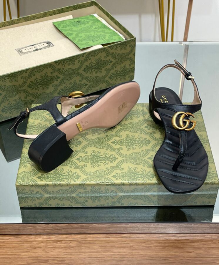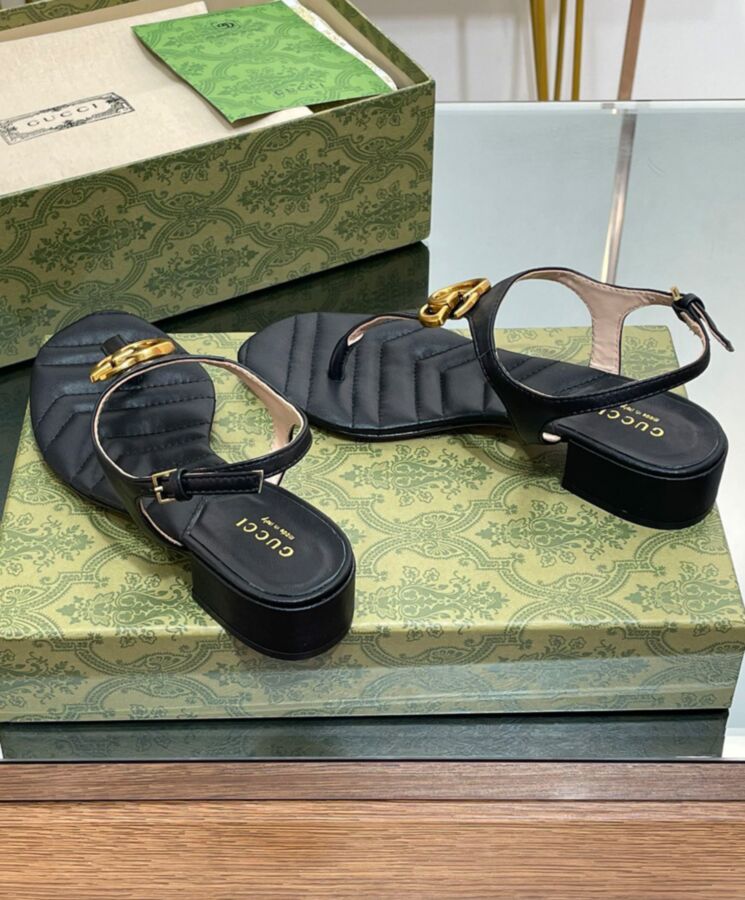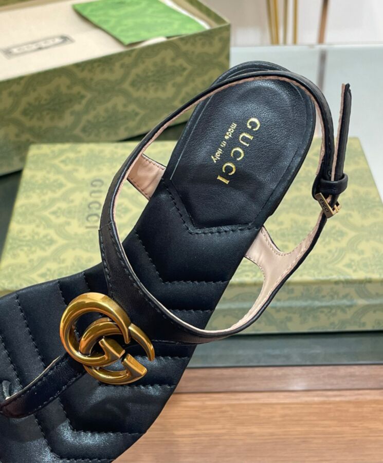 The emblematic Double G is reintroduced for Gucci Aria in a luminous gold-tone, set on a pair of leather sandals. The symbol appears throughout the House’s history, weaving a narrative that connects the House’s past, present and future.