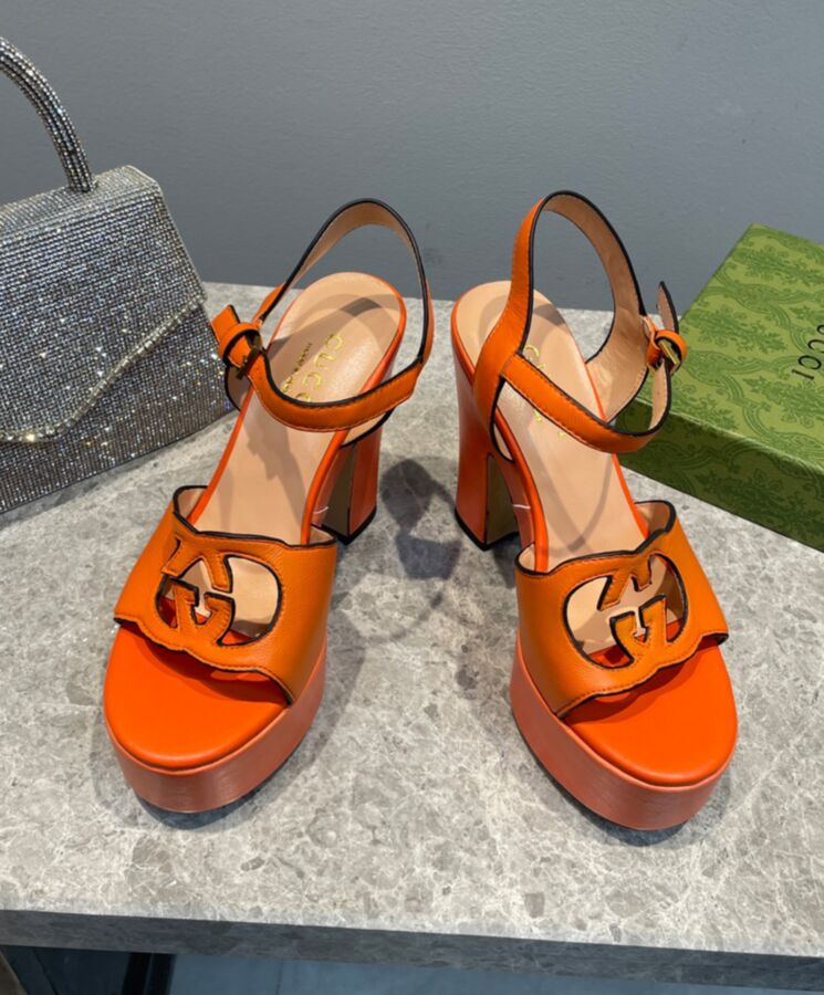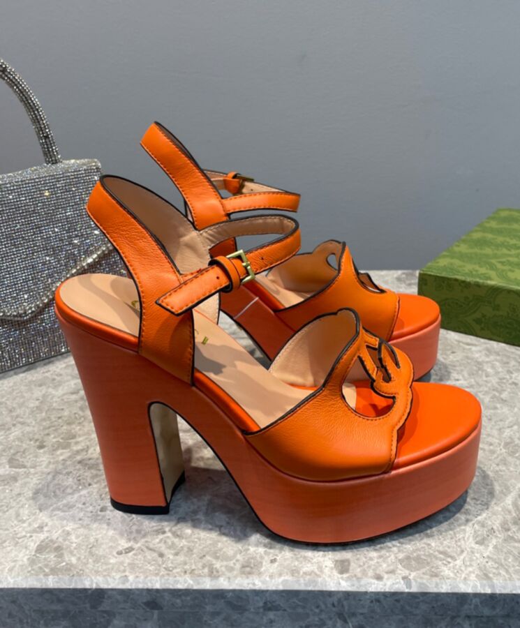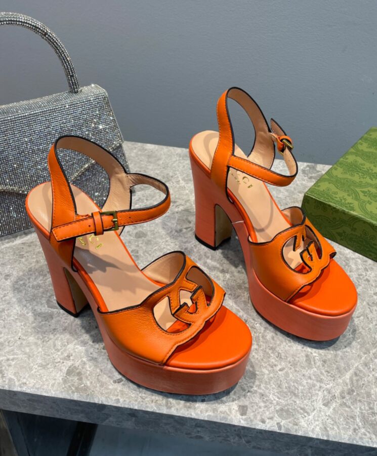 Influenced by an archival design from the ’70s-a hallmark era of the House, the Interlocking G appears as a maxi cut-out detail atop this leather platform sandal. An ode to timeless elegance, the Cruise 2023 Gucci Cosmogonie collection explores archival symbols in new ways.