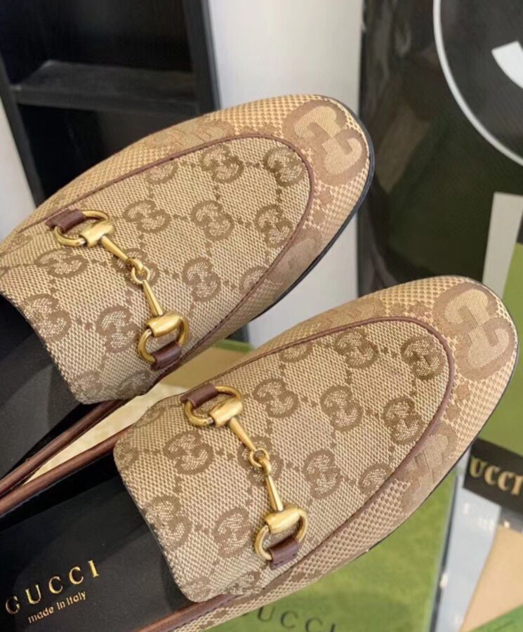 Made from Maxi GG logo jacquard canvas, Gucci’s Joordan loafers are a go-to for laid-back elegance. The metal Horsebit hardware adds an iconic finish. upper: cow leather, fabric lining: leather trim: brass sole: leather insole and sole round toe