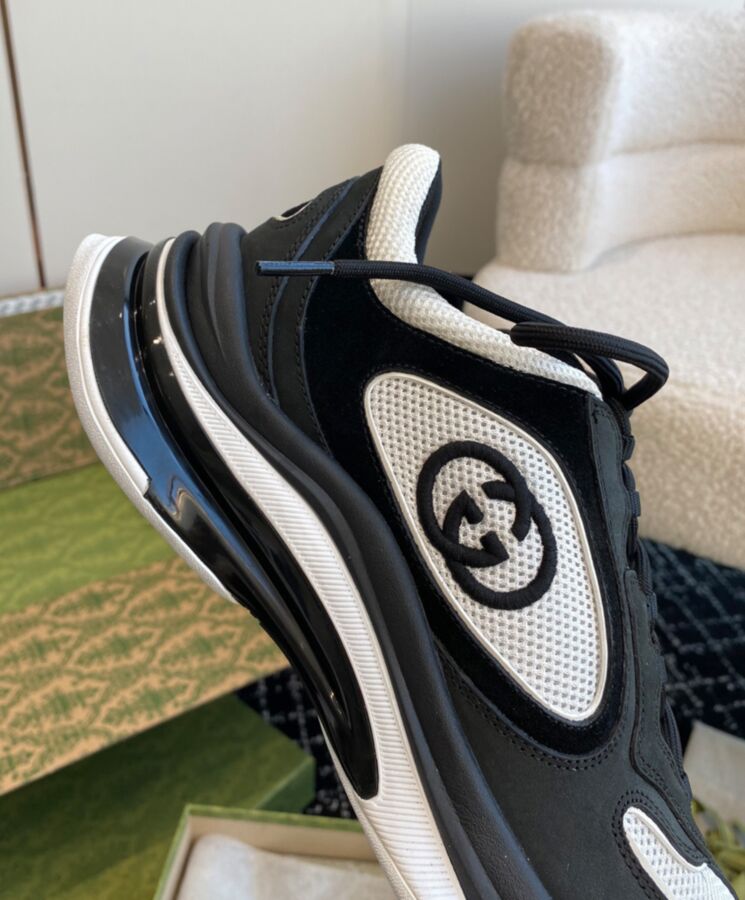 Designs inspired by the sporting world are interpreted through the Gucci lens with standout logo details. This pair of Gucci Run sneakers spotlights a suede with the unmissable Interlocking G logo.
