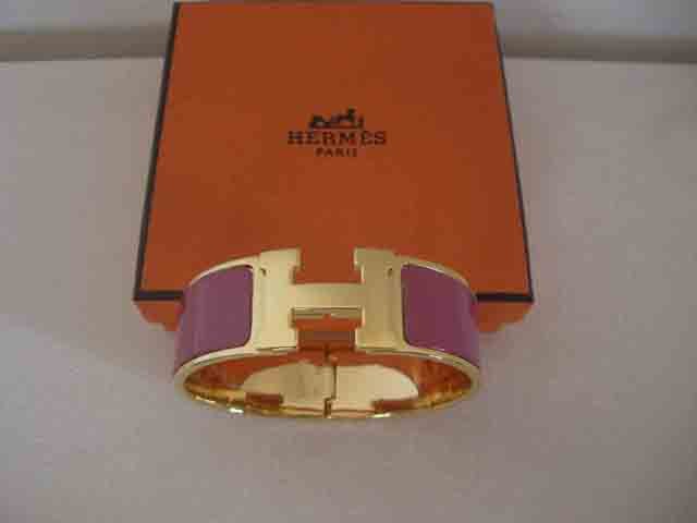 Hermes of Paris, “The H bracelet” purple enamel & Gold bracelet.