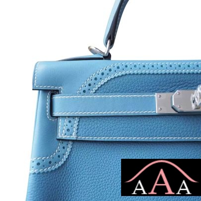 Hermes Kelly 28 Bag Ghillies CK75 Blue Jean Togo Phw