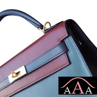Hermes Kelly 32 Bag 2Q Vert Anglais And 55 Rouge H And 78 Blue Marine Box Ghw