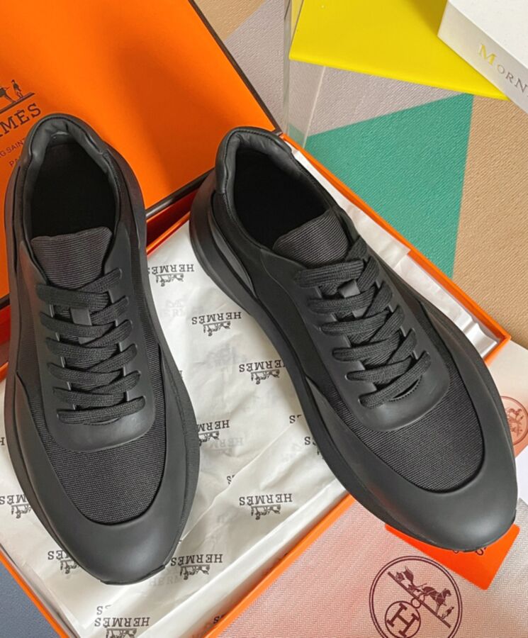 Sneaker in technical canvas and calfskin with canvas-covered sole. Technology and artisanal know-how intertwine on this sneaker, for a chic style. Iconic “Hermes” logo marked in high frequency.