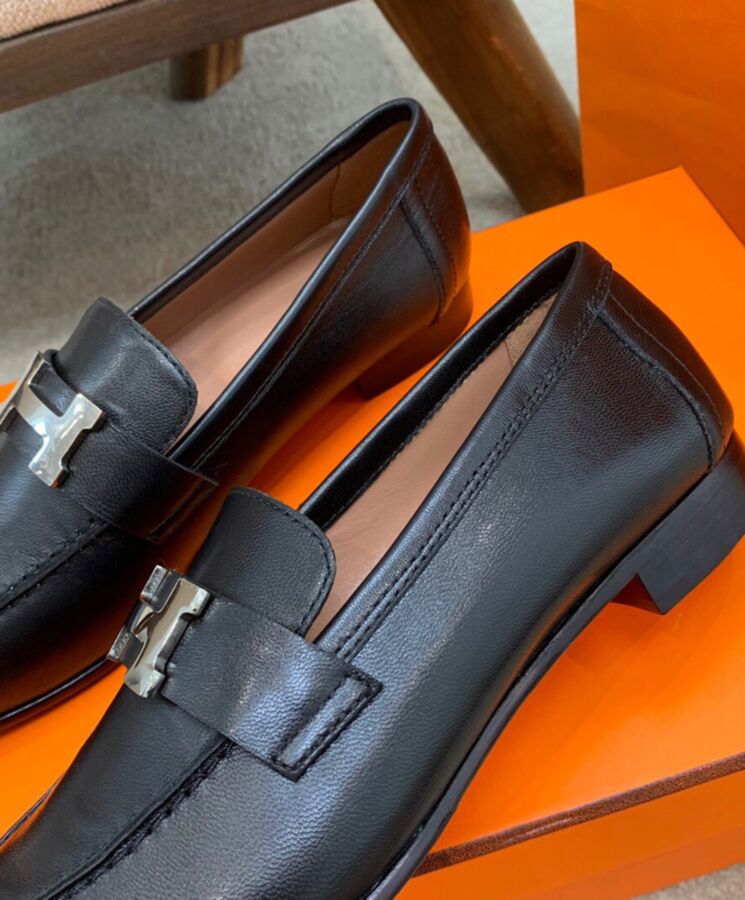 Loafer in goatskin with palladium plated “H” detail.