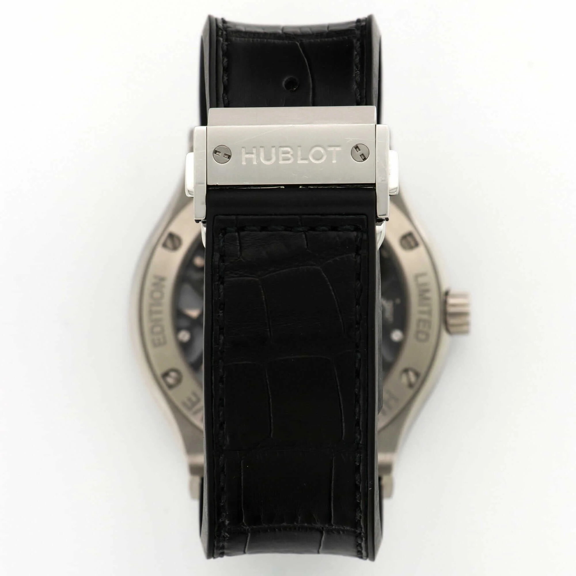 The Hublot Classic Fusion Tourbillon Skeleton Dial 505.NX.0170.LR Replica is a luxury watch. It features an automatic movement with a caliber of HUB6010.H1.1 and a power reserve of 60 hours. The case is made of titanium and is 45.00 mm in size. The bezel is also made of titanium and is transparent in color. The crystal is made of sapphire glass and the bracelet is made of alligator skin with an adjustable link and a 904L stainless steel deployant clasp. The watch also features a crocodile leather bracelet with adjustable links, a 904L stainless steel fold over clasp with safety release, and a tourbillon, hour, minute, and second function. This watch is a perfect replica of the original, with the same arrangeable serial numbers and cards, font, punto, and finishing for writings and markings, thickness, size, and powerful movement and caliber.
