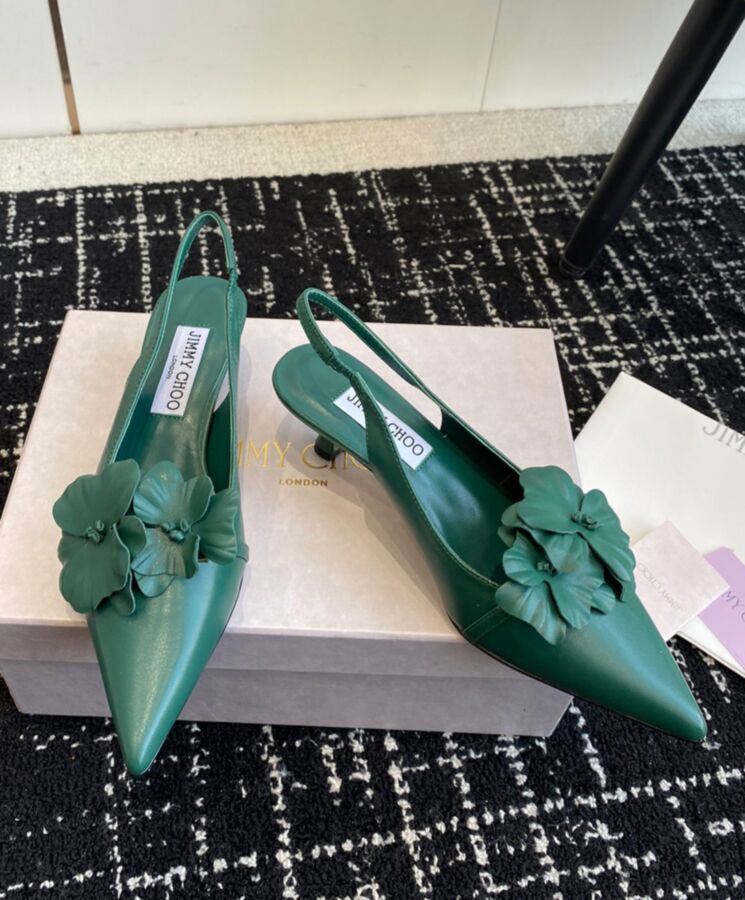 AMITA/FLOWERS 45 series slingback high heels, with eye-catching horseshoe heels, enhance the elegant aura of the classic silhouette. Made of leather, made in Italy, the shoe body is decorated with flowers of the same color, exquisite and unique, complementing each other, fashionable but not artificial. Decorative florals are crafted from embossed leather, contrasting the smooth texture of the nubuck leather upper. An elegant elastic strap intersects with the deep V opening of the upper, and is matched with a 4.5cm mid-heel. It is a comfortable and eye-catching choice to match with daywear.