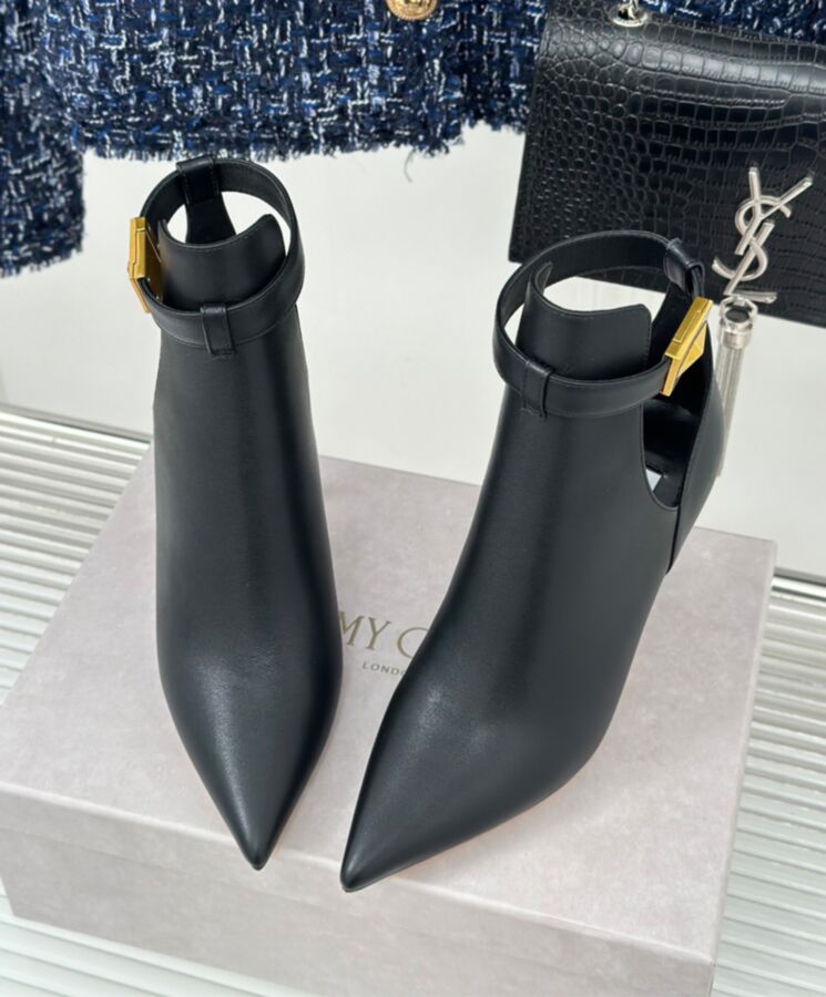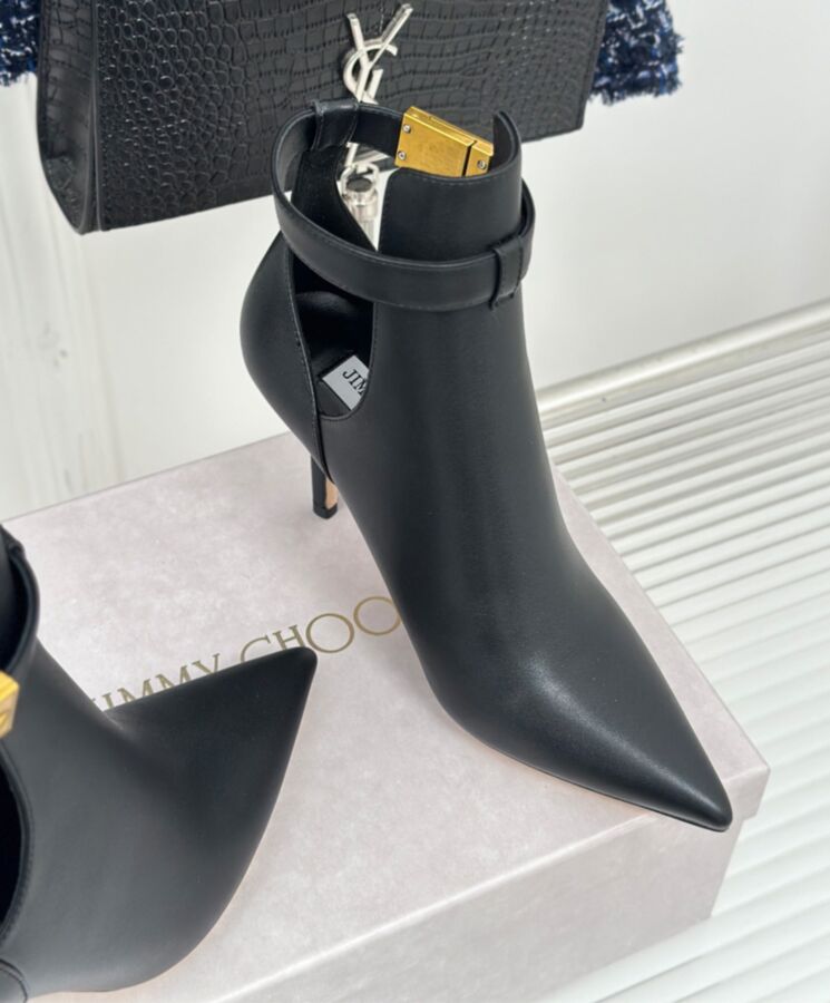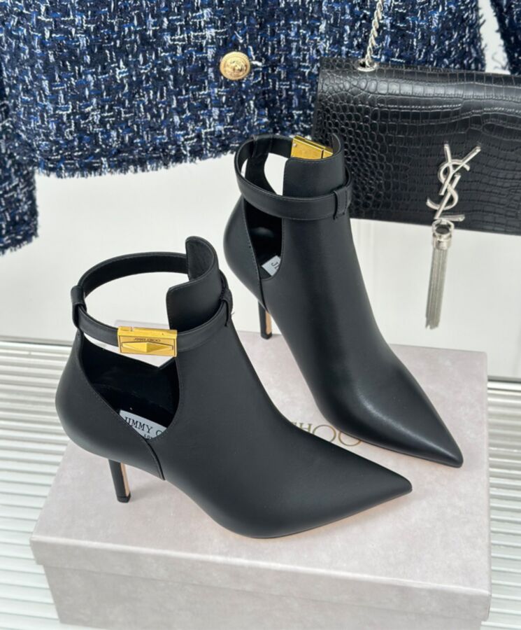 NELL AB series ankle boots, made of luxurious calfskin, with a classic pointed toe silhouette and a small stiletto heel. Modern and avant-garde hollow design, decorated with the DIAMOND series’ signature gold hardware. Personalized and chic boots can easily enhance the fashionable look.