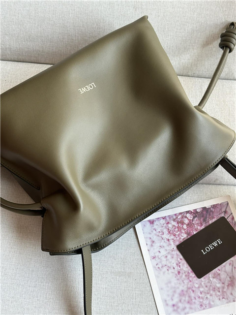 Launched in the 1980s, the Flamenco Clutch cinches closed using drawstring pulls finished in signature coiled knots. This version is crafted in nappa calfskin.