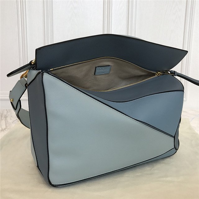 The first completely new bag designed by Jonathan Anderson has become a LOEWE icon. With its innovative cuboid shape, extreme tactility and maximum utility, volume is created through precise cutting so the Puzzle bag can be worn in five different ways, from shoulder bag to clutch and folds completely until it’s flat. Key characteristics: classic calf leather, multi toned combination, hand-painted edge, textile lining and two pockets inside. Removable adjustable strap for the most comfortable length.