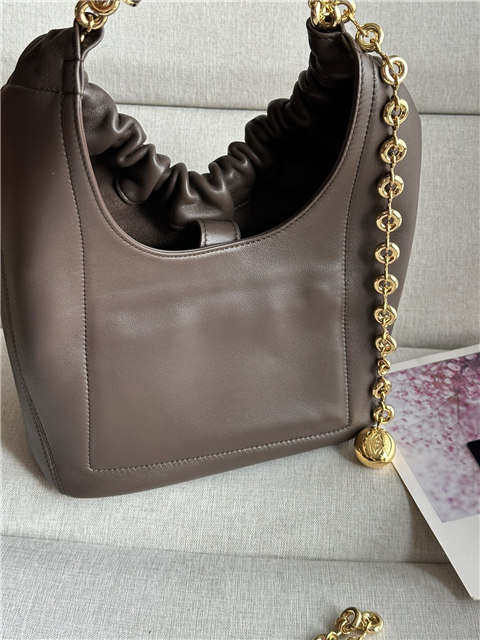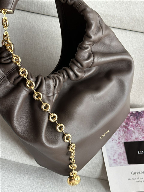 The Squeeze bag is a sophisticated and feminine bag in buttery nappa leather. It is a masterpiece of traditional craftsmanship, innovative research and distinctive design, with a surprisingly light ruched body, an adjustable donut chain and a tactile squeezy handle. This is a small version in nappa lambskin