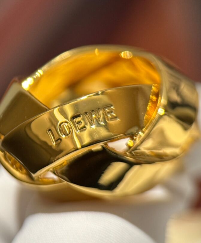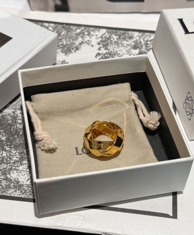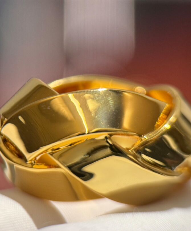 Chunky Nest ring crafted in sterling silver with a gold finish. Inspired by the Nest bag’s signature braiding.