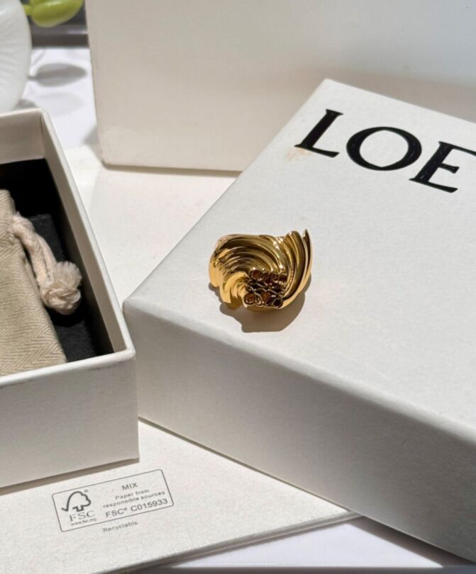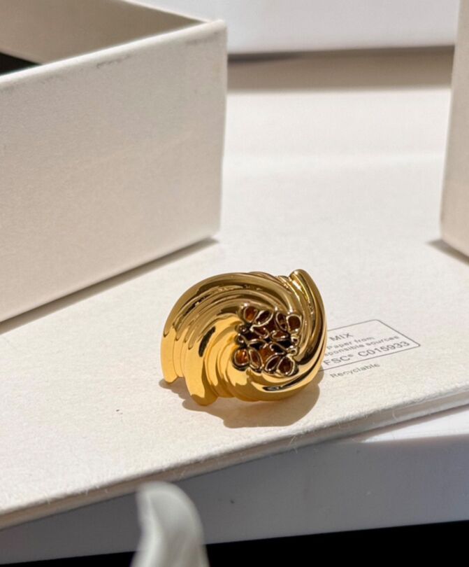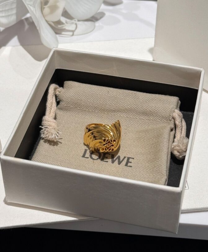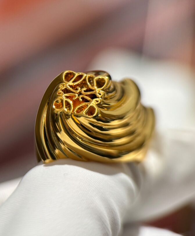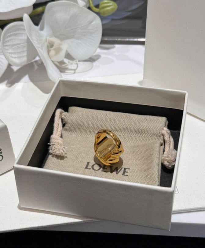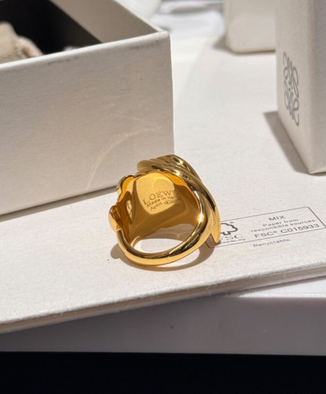 Loewe Womens Twisted Anagram Signet Ring Golden