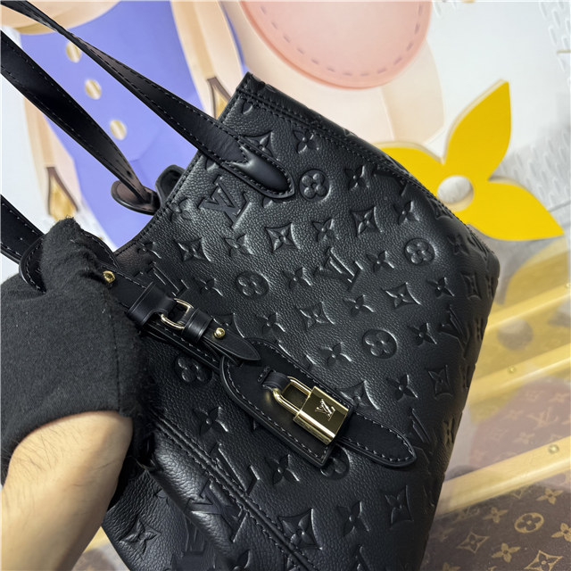 The All In One PM is an extension of the All-In family, offering two styling options and plenty of room to store daily essentials. It is made from Monogram Empreinte leather elevated with gold-toned hardware and can be worn as a round hobo bag or an open tote. Signature details include the decorative LV padlock and name tag.