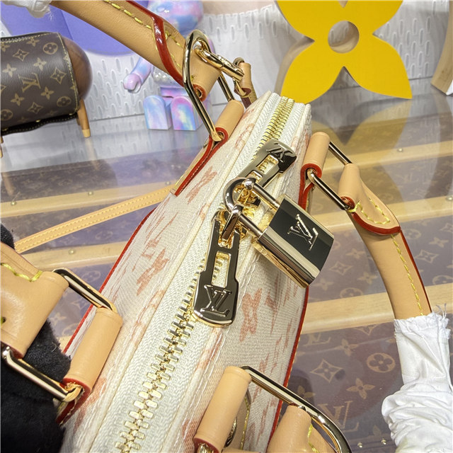 Celebrating 130 years of the Louis Vuitton Monogram, this Alma BB presents a vintage-inspired update on the iconic signature. It is made from Monogram Origine canvas, which recalls heritage designs from the archive, and is offered in a timeless Monogram Origine Lin palette. Trimmed with smooth cowhide, it is lined with striped fabric and features a signature padlock and an exclusive anniversary address tag.