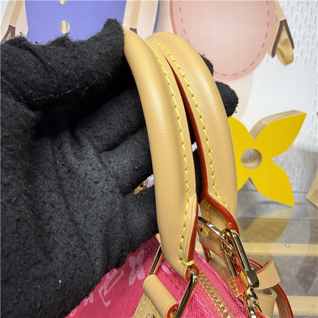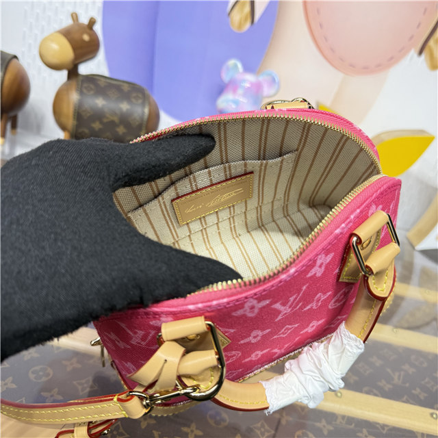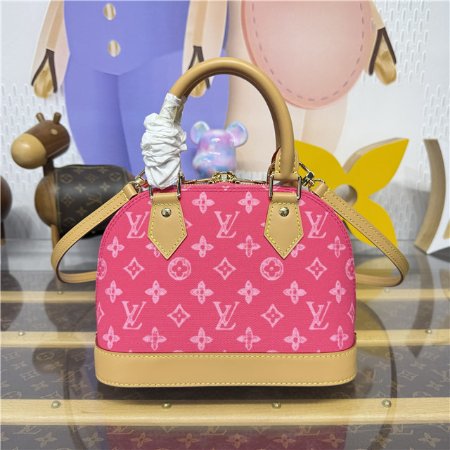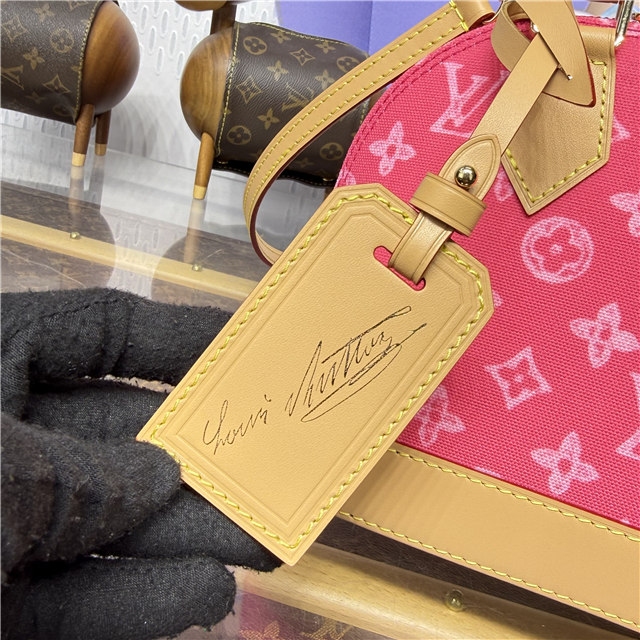 Celebrating 130 years of the Louis Vuitton Monogram, this Alma BB presents a vintage-inspired update on the House”s iconic signature. It is made from Monogram Origine canvas, which recalls heritage designs from the archive, and is offered in a Monogram Origine Rose Ruban color palette. Trimmed with smooth cowhide, it is lined with striped fabric and features a signature padlock and an exclusive celebratory address tag.