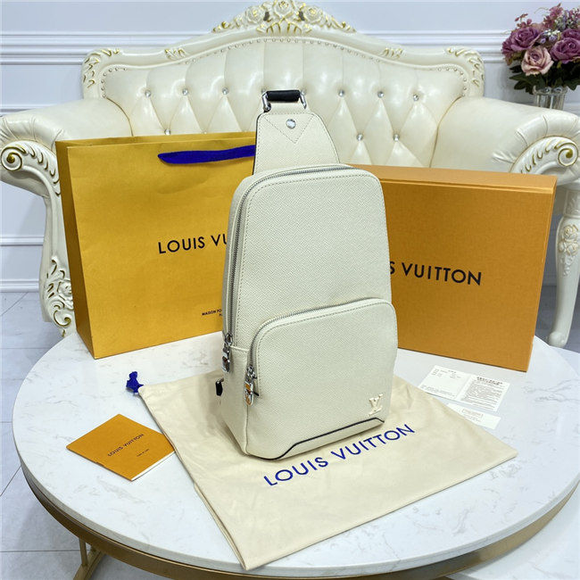The versatile, stylish Avenue Sling Bag takes on a fresh contemporary look in gray Taiga leather accented with the LV initials in metal. Its two zipped compartments keep belongings securely in place, while the extra-wide strap makes it a breeze to carry over one shoulder. A subtly elegant accessory for today’s active man.