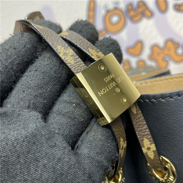 Drawstring closure with LV circle metallic piece