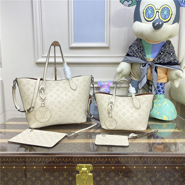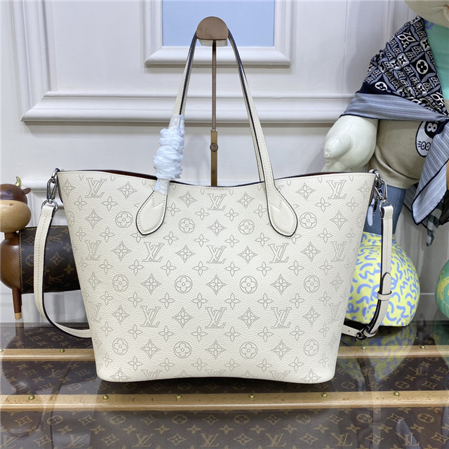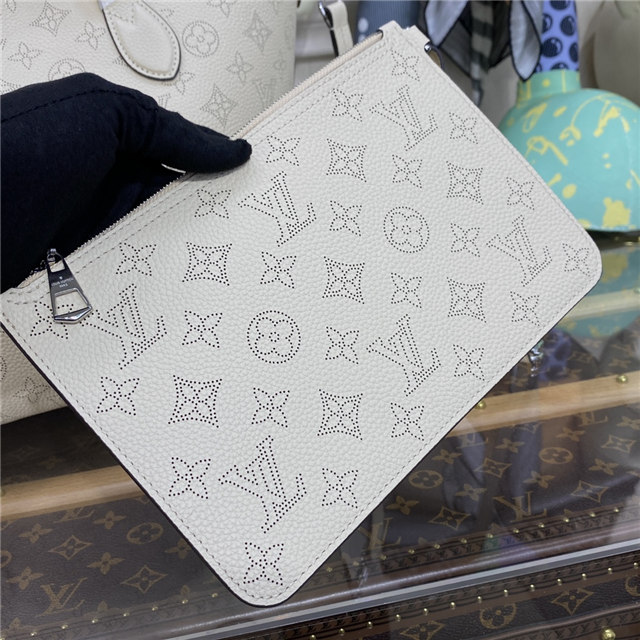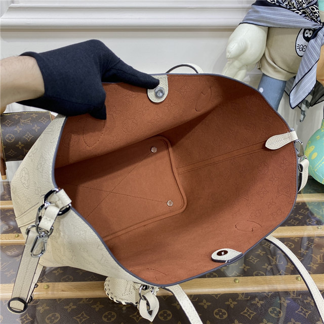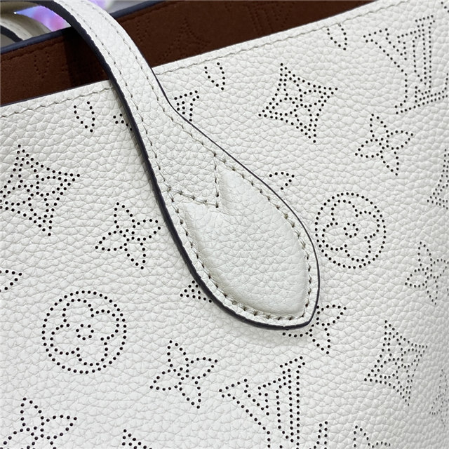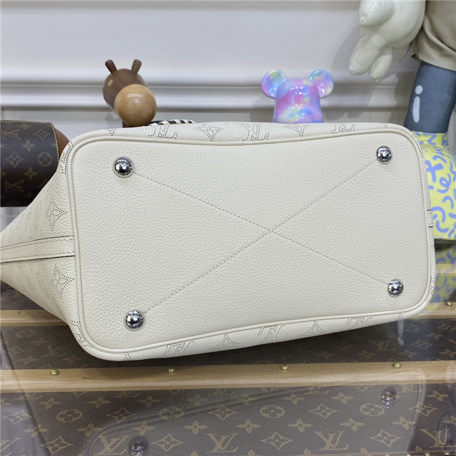 The Blossom MM tote bag is made from Mahina calfskin, with the Monogram pattern delicately perforated into the leather. The supple, lightweight calfskin highlights the draped effect of the design and makes it very body-friendly. It’s signed with a leather tag, featuring perforated LV Initials circled in leather braiding. Two long handles allow shoulder carry.