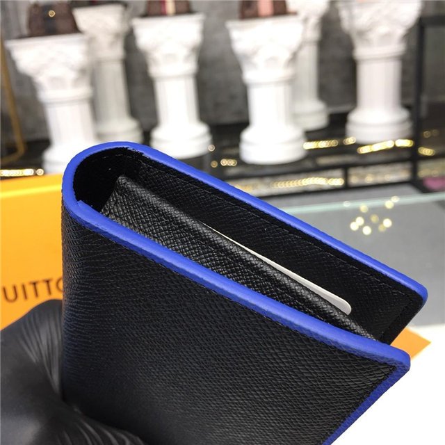 Louis Vuitton”s classic Brazza wallet is an elegant, streamlined design with multiple practical features. It looks modern and stylish in emblematic Taiga leather, energized with bold contrasting edges.