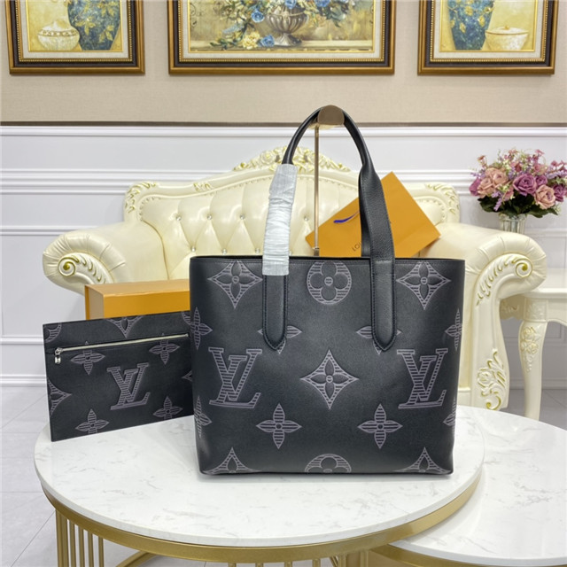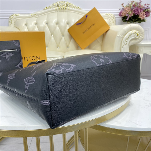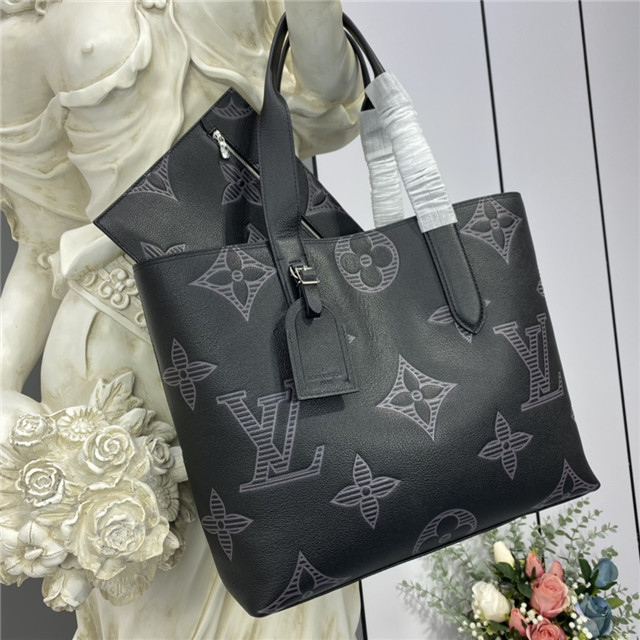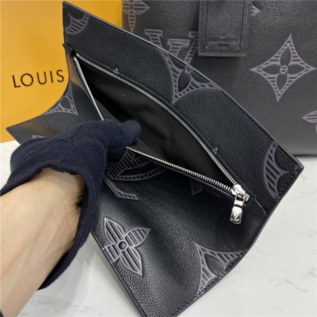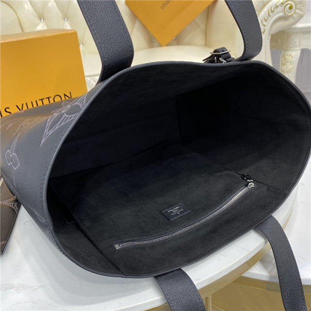 Made from Taurillon Shadow leather, the roomy Cabas Voyage tote features two long handles for comfortable hand or shoulder carry. The extra-large Monogram motif embossed on the leather gives this bag an understated charm. Its practical interior includes a flat pocket and a zipped pocket that can be removed and used as a small document pouch.