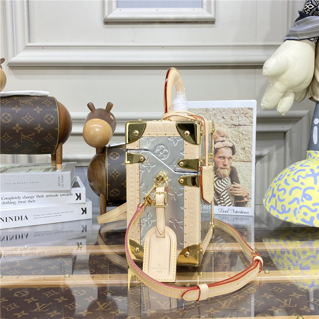 For Cruise 23, the Camera Box has been declined in a futuristic style embodying the key futuristic thematic throughout the show. Inspired by the Mirror collection imagined by Marc Jacobs in 2007, the mirror effect is now animated with Cosmogram playing with a sophisticated Monogram cowhide leather.