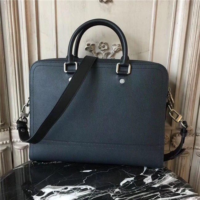 The Canyon briefcase in Utah calfskin features a mix of smooth and grained finishes, accented with double-stitching and aged-silver hardware. A light, compact business bag, it’s designed for convenience, with comfortable Toron handles and a removable strap.