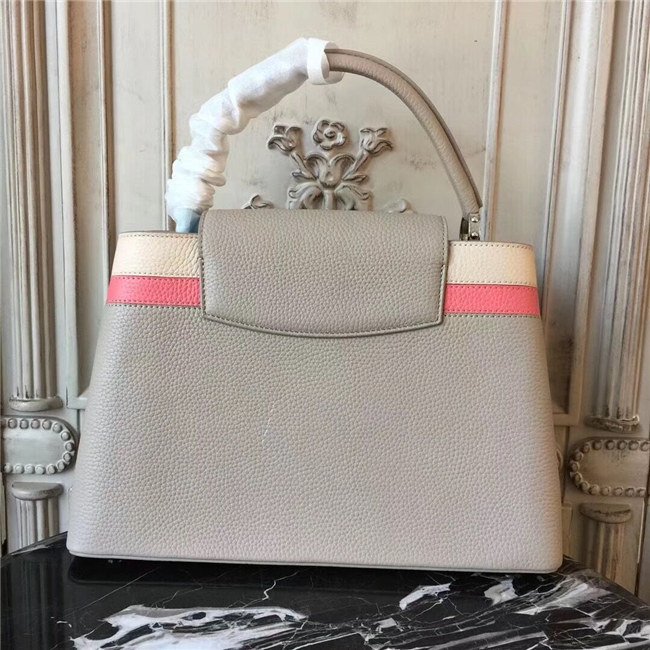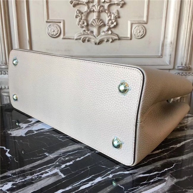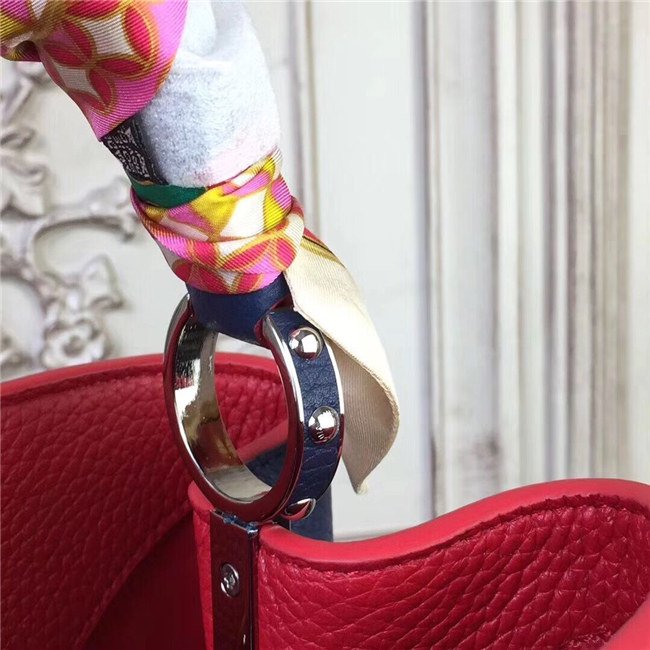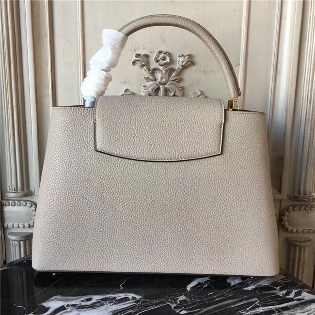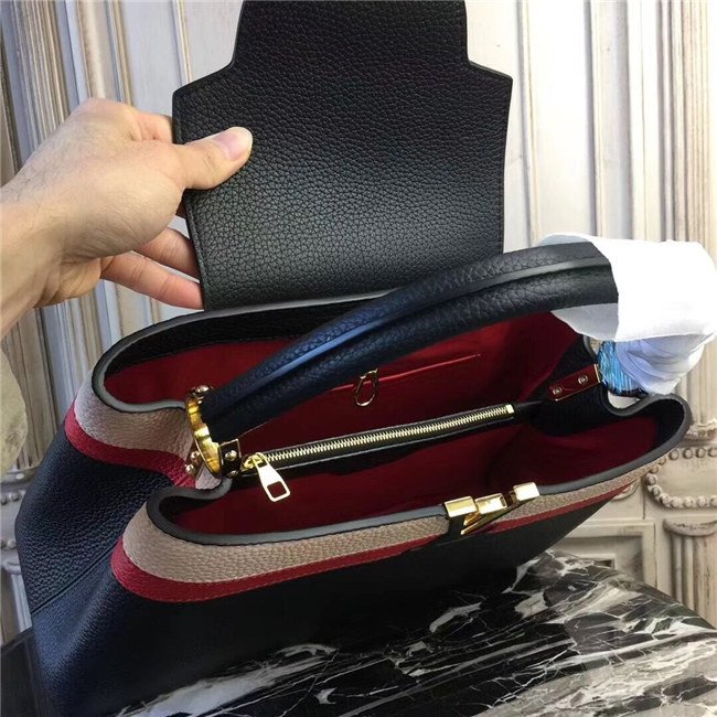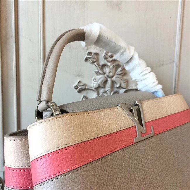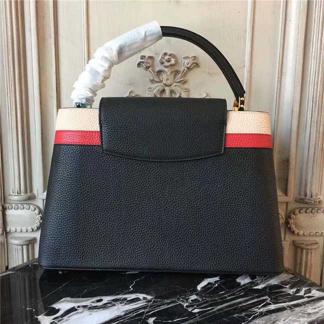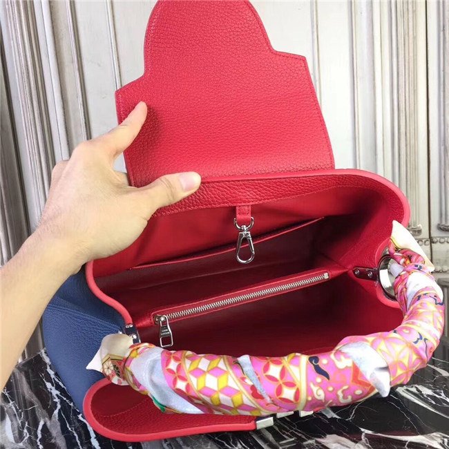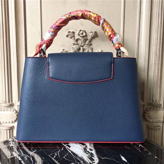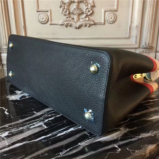 Taking its name from the Rue des Capucines in Paris, where Louis Vuitton opened his first store in 1854, the timelessly elegant Capucines bag is a testament to fine leather craftsmanship. In full-grain Taurillon leather, it combines refined details, including a semi-rigid handle secured by jewel-like rings, with a spacious and functional shape offering two inside compartments. Its distinctive flap can be worn two ways: outside to reveal the outline of a Monogram flower, or inside to show the LV initials.