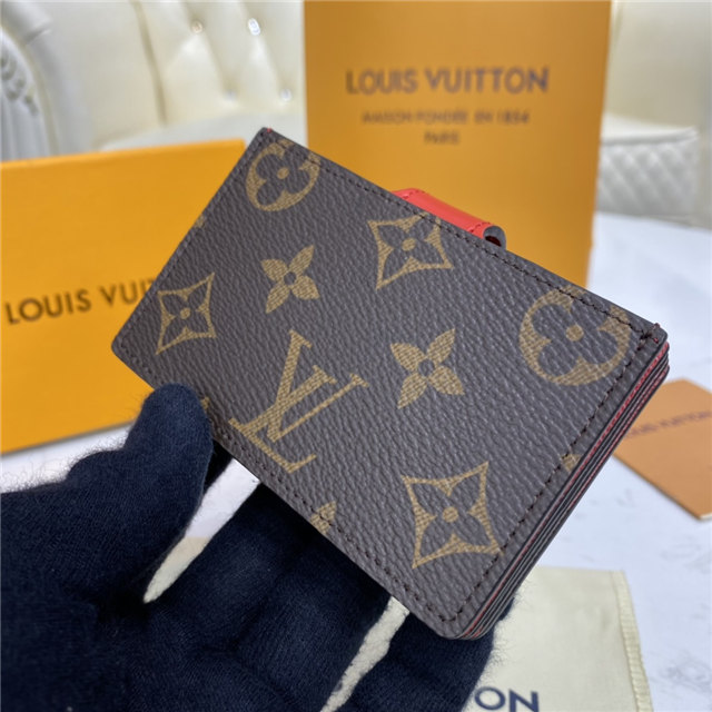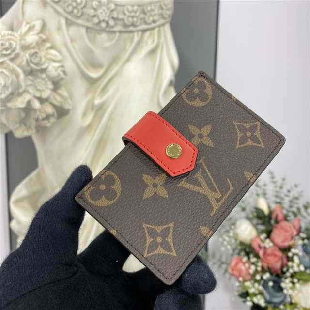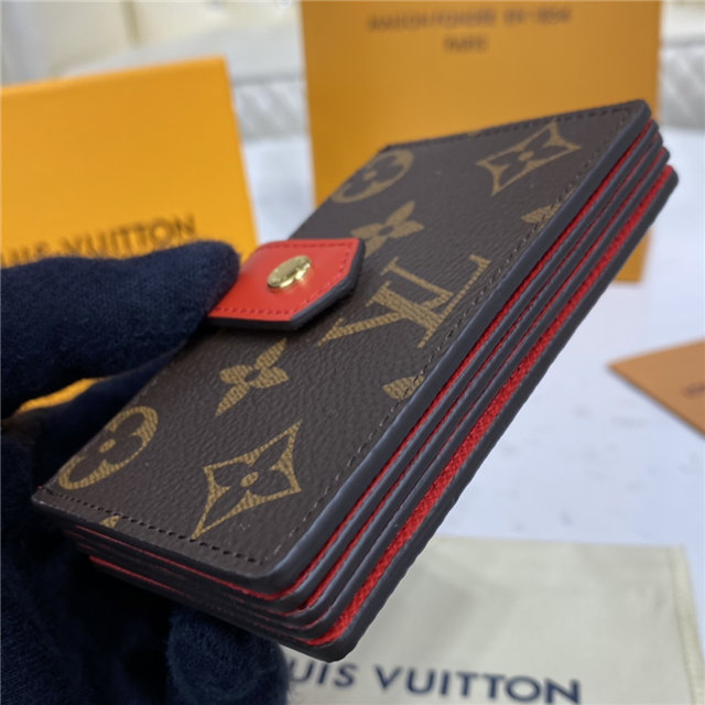 The Gusseted Card Holder combines iconic Monogram canvas with colored cowhide-leather trim. Its design is both compact and secure, thanks to the leather tab, which is closed with a Louis Vuitton-engraved, gold-tone press-stud. Once open, its five gussets offer easy access to bank, transport or loyalty cards.
