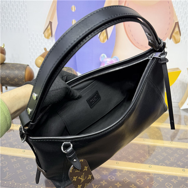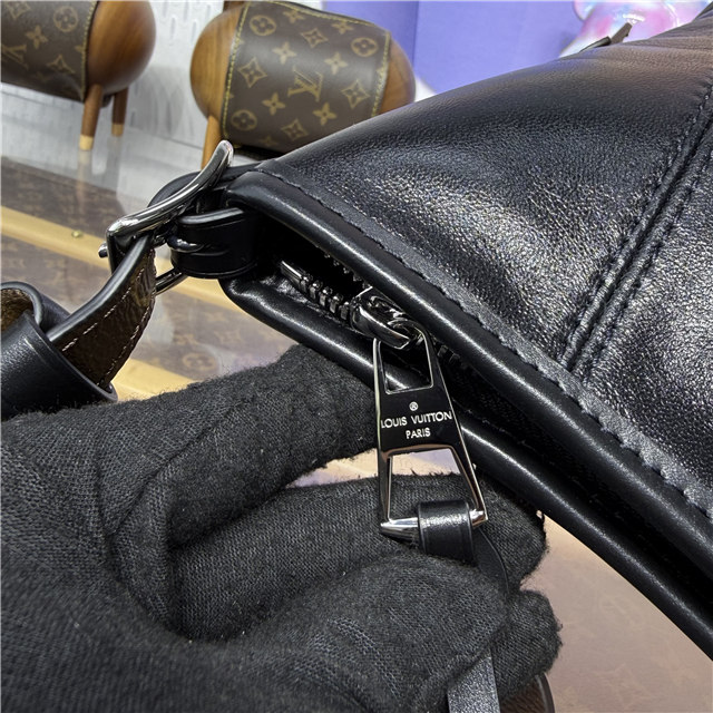 The LV Vibe collection presents this Carryall East West, which artfully blends heritage details with a contemporary silhouette. It is made from supple lamb leather with signature Monogram trims, including a name tag that pays tribute to the House’s archival trunks. Sized to fit everyday essentials, it has a removable strap and can be worn crossbody, over one shoulder or carried by hand.