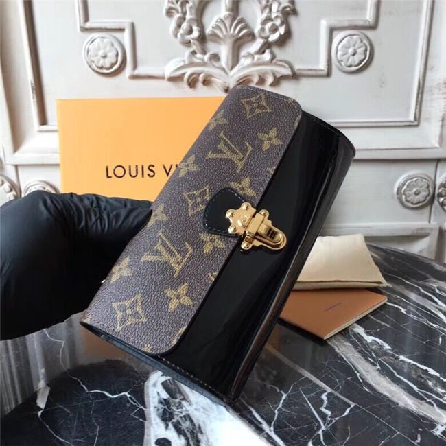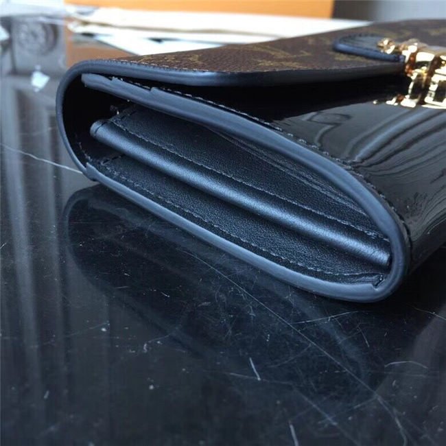 The Cherrywood wallet is an elegant envelope style which combines iconic Monogram canvas with smooth patent calf leather. Its standout detail is a gold-color clasp inspired by the locks of historic Louis Vuitton trunks. Inside, this spacious and practical design offers multiple credit card slots, compartments for banknotes and a zipped pocket for coins.