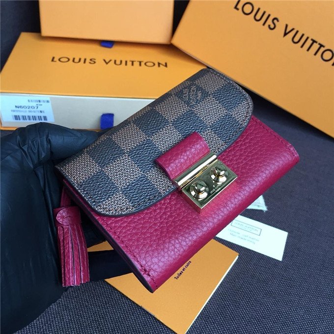 The Croisette compact wallet takes its signature details – a leather tassel and gold-tone lock – from the Croisette handbag. Its elegant design combines Louis Vuitton”s historic Damier Ebene canvas with grained supple leather. Despite its small dimensions, it still offers ample space for notes, coins and credit cards.