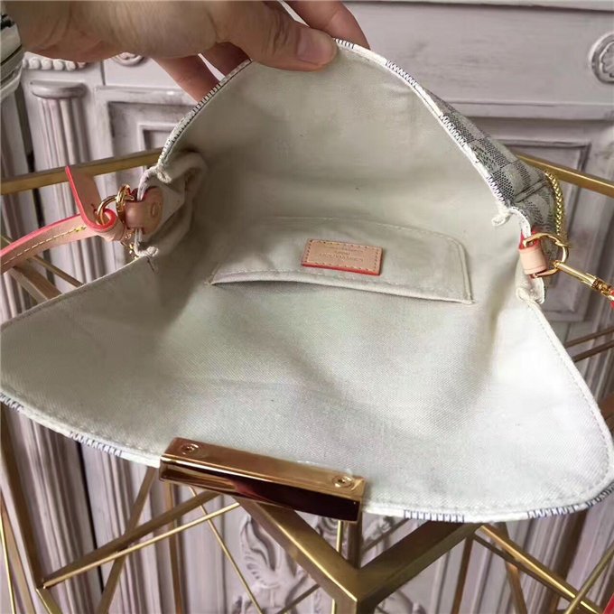The Louis Vuitton’s versatile Pochette Favorite PM bag looks delightful in Damier Azur canvas. Its pure, feminine shape makes it ideal for all occasions.