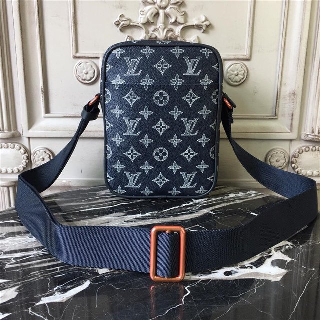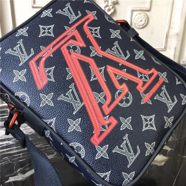 Upside-down, these LV Initials are a hallmark of the Men’s 2018 Fall Pre-collection. Designed by Kim Jones the bold pink logo emblazons this Danube PM city bag, crafted of Monogram Ink canvas. Compact, yet roomy enough for essential belongings, it features an adjustable strap for shoulder- or cross-body wear.