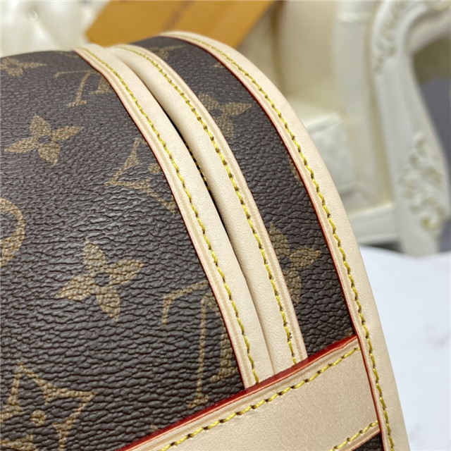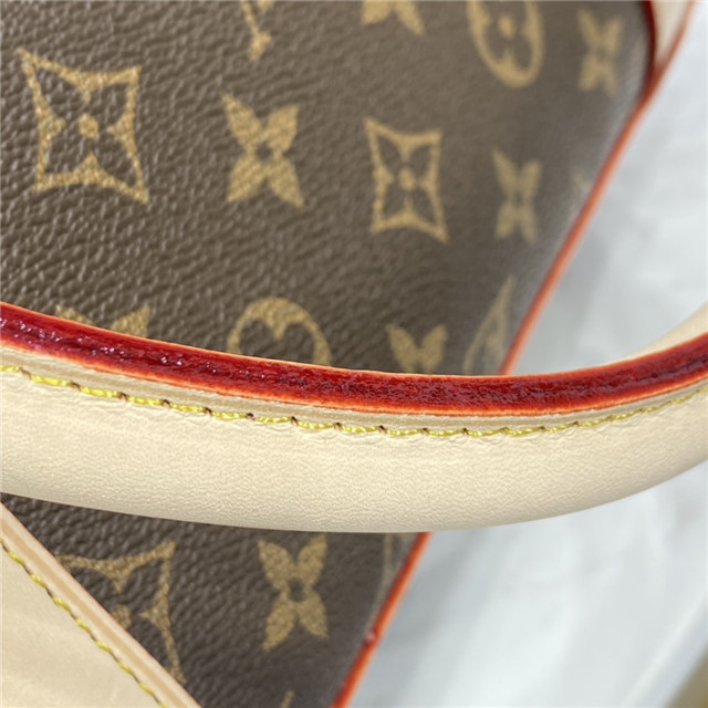 - Monogram canvas, cross grain rounded leather handles, washable lining