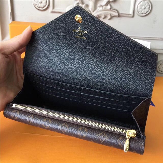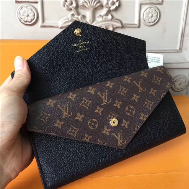 Combining fine-grained calf leather with iconic Monogram canvas, this stylish, trendy wallet coordinates with Louis Vuitton”s Double V bag. The original double flap conceals a secret pocket, which is ideal for tickets or coins.