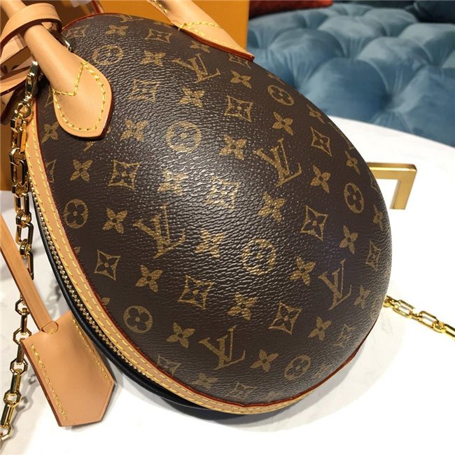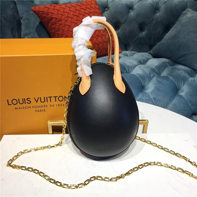 The LV Egg bag designed by Nicolas Ghesquiere caused quite a stir at the Spring-Summer 2019 show. This model in timeless Monogram canvas and black calf is thermoformed to achieve the oh-so-chic ovoid shape. Trimmed with VVN cowhide, this fashion-forward piece also features a mini chain strap and can hold an iPhone X.