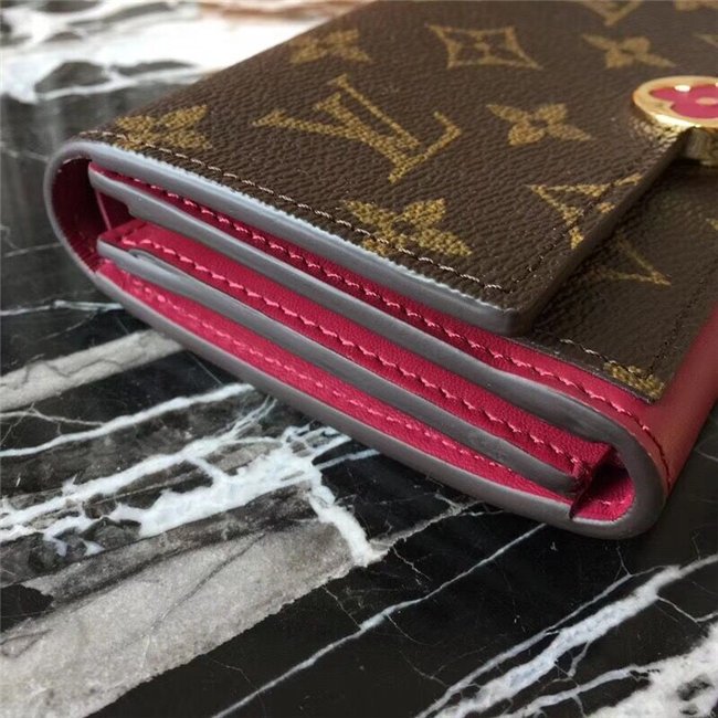 The Flore Compact Wallet combines iconic Monogram canvas with colorful calf leather for a playful, vibrant look. Its signature is the feminine Monogram flower press stud, which is partially covered in leather. The compact wallet boasts many practical features, including a generous zipped coin pocket.