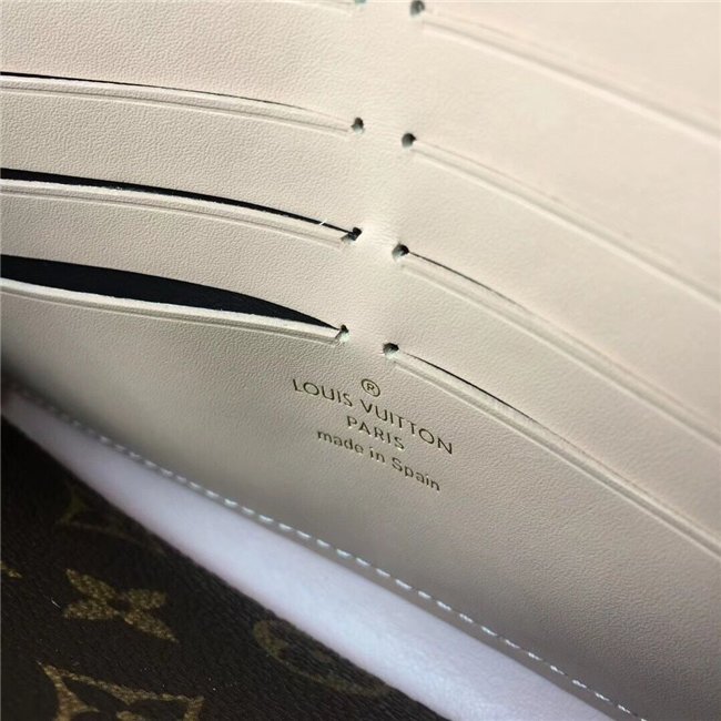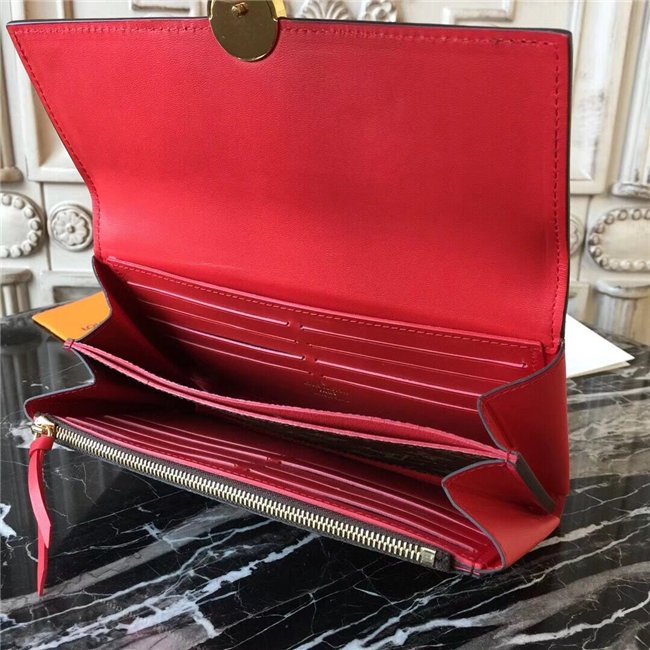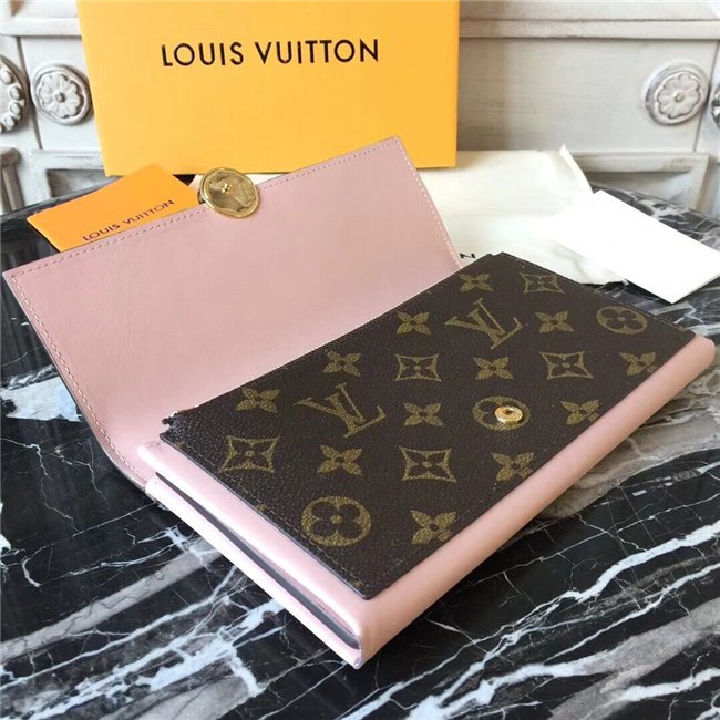 The Flore Wallet combines iconic Monogram canvas with colorful calf leather for a playful, vibrant look. Its signature is the feminine Monogram flower press stud, which is partially covered in leather. The long wallet boasts multiple practical features, including a soft, microfiber-lined pocket to hold a phone.