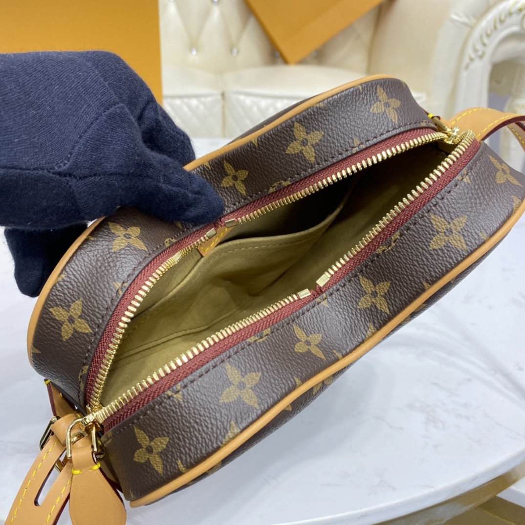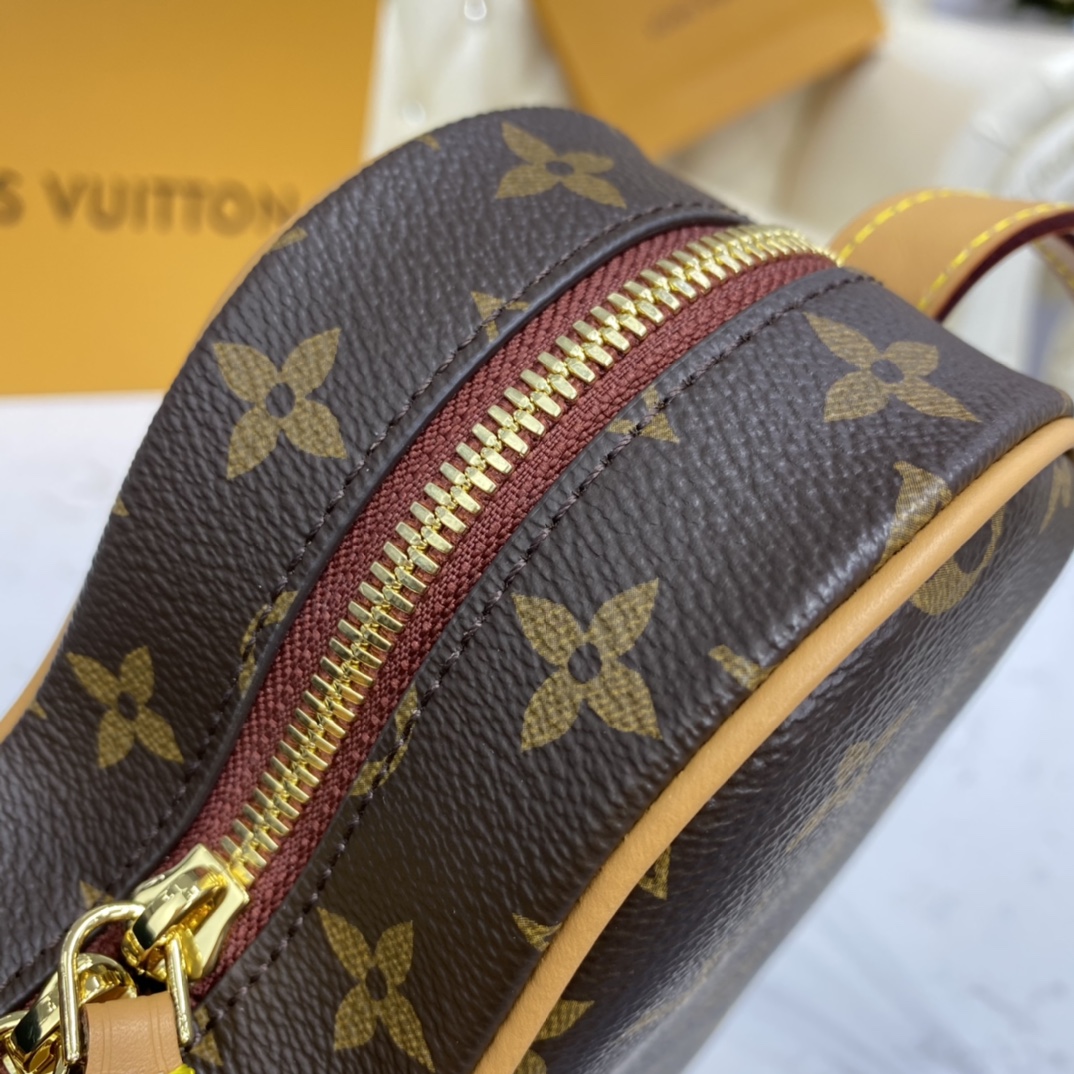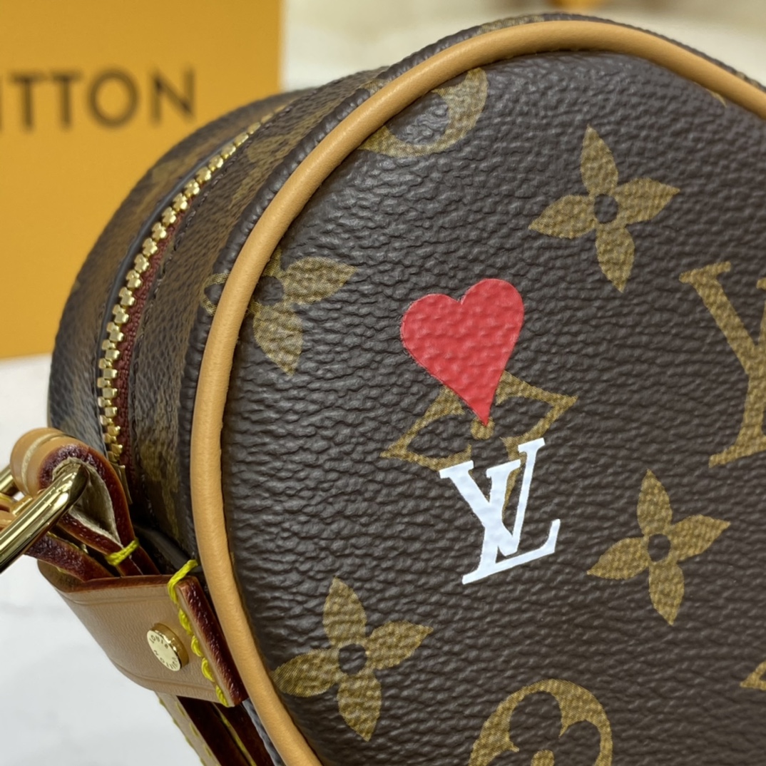 The Coeur is a small handbag in the shape of a heart fashioned from Monogram canvas. For Cruise 2021, Nicolas Ghesquière twists the Monogram pattern by printing a small bright red heart on the top left, echoing the bag’s own form. The adjustable leather strap enables comfortable shoulder and cross-body carry.