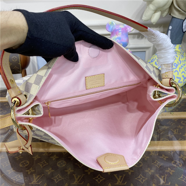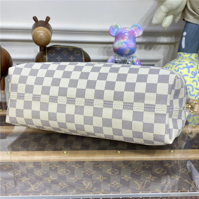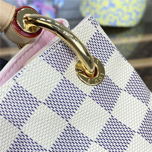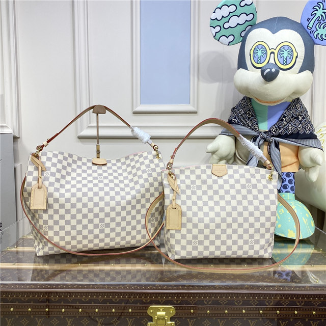 The Graceful PM looks fresh and feminine in supple Damier Azur canvas. This spacious hobo has a lightweight, body-friendly design that makes it perfect for every day. The flat handle sits easily on the shoulder, while emblematic details, such as the leather name tag, reference Louis Vuitton”s travel heritage.
