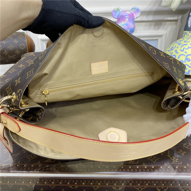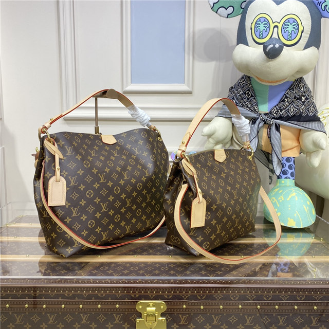 The spacious Graceful hobo has a lightweight, body-friendly design that makes it perfect for every day. The flat handle sits easily on the shoulder, while emblematic details, such as the leather name tag, reference Louis Vuitton”s travel heritage.