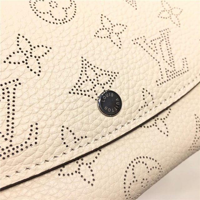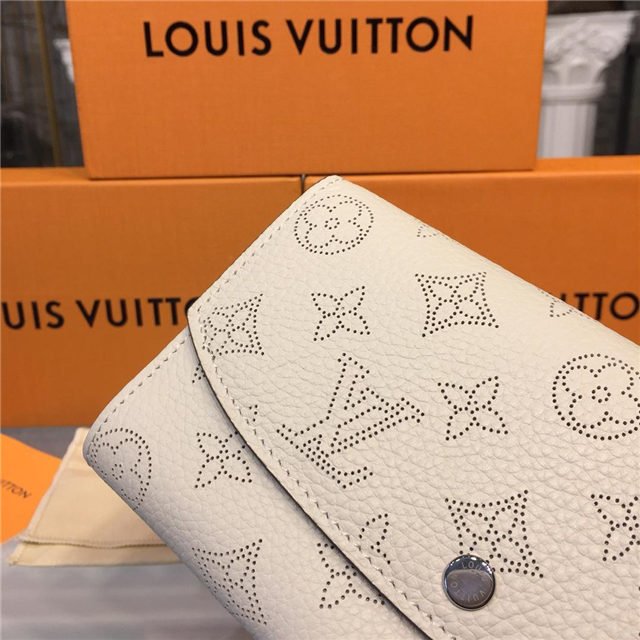 In luxurious Mahina leather, the Iris Wallet is a refined accessory. Its sumptuously soft calfskin is enhanced with a perforated Monogram design and discreet press stud closing.