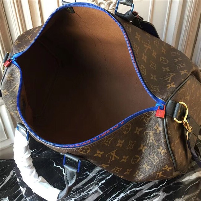 Featuring the new technical, sports-inspired feel unveiled by Kim Jones at the 2018 Spring-Summer Show, this Keepall 45B mixes Monogram canvas, supple Taiga leather and colored metallic pieces for a sporty chic allure.