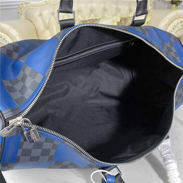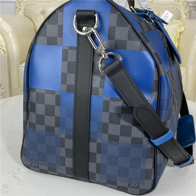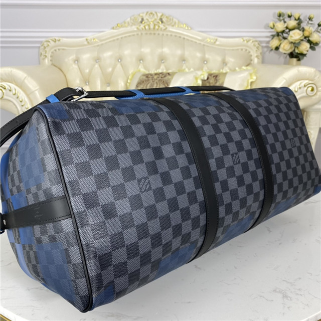 The classic Keepall takes on a smart new look with Damier Graphite Giant canvas. Outsized checks in subtly graduated shades of deep, masculine blue offer a creative variation on an iconic Louis Vuitton pattern. And its surprisingly large capacity and multiple carry options make it an ideal travel bag for Damier fans.